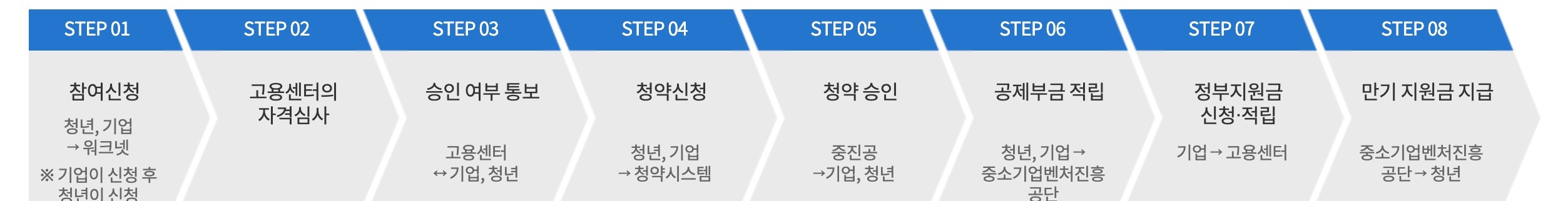 - 최소 2년 동일 사업장에서 근무하면서 실질적 경력 형성의 기회를 가질 수 있으며, 만기 후에는 중소기업벤처기업부의 내일채움공제(3-5년)로 연장 가입이 가능합니다. 기업 적립금은 2년간 400만 원으로 구성되며 이 금액은 기업이 100% 부담합니다.