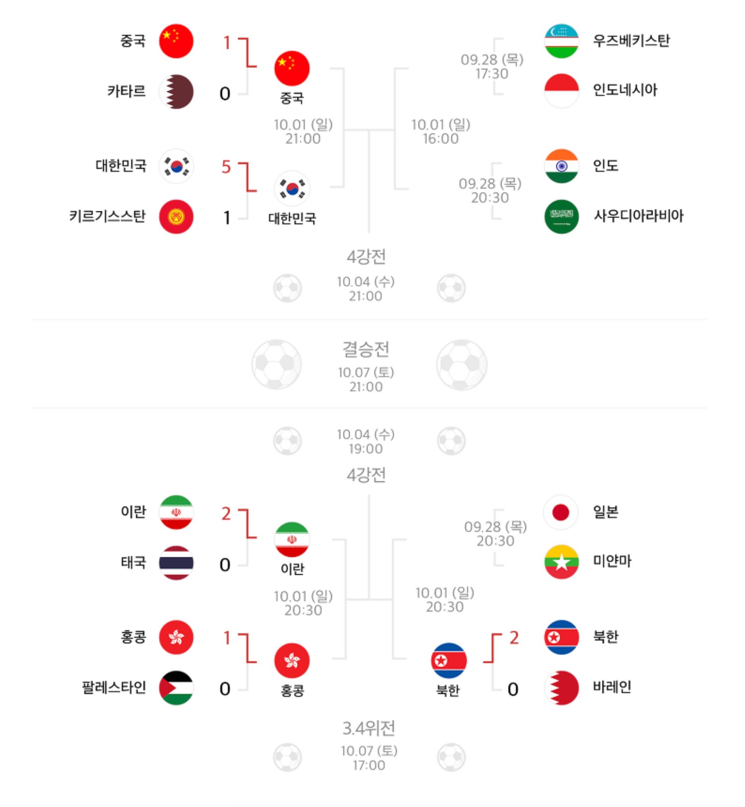 | 대한민국 vs 북한 아시안게임 여자축구 8강전 일정 및 중계 실시간 경기결과 대진표 (1) | 2023.09.29 |