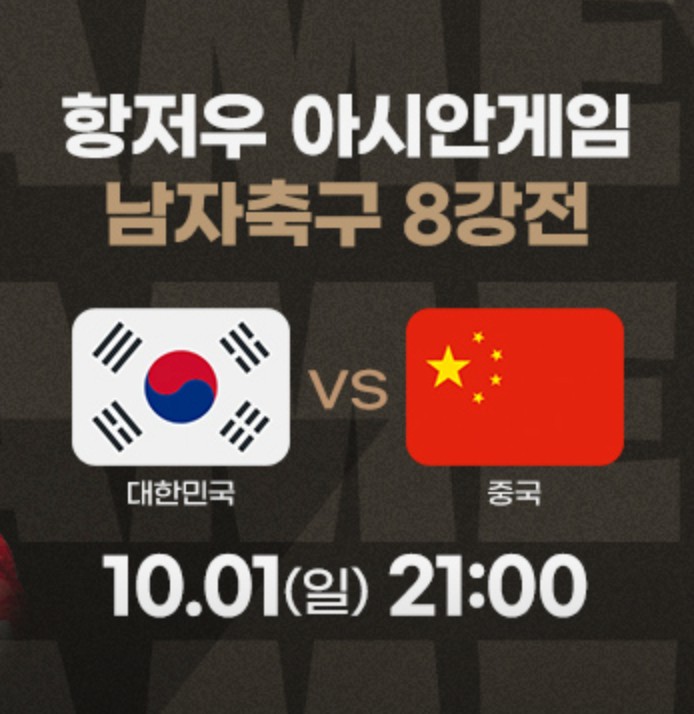 한국의 8강 상대는 같은 시간에 카타르를 1-0으로 꺾은 '홈팀' 중국입니다. 한국과 중국은 10월 1일 일요일 오후 9시에 항저우 황룽 스포츠센터 스타디움에서 격돌합니다. 중국 관중들은 열성적인 응원으로 유명합니다. 중국 관중들은 종목을 불문하고 경기장을 가득 채우며 '짜요!'라고 외치고 있습니다. 이번 대회는 특히나 비디오 판독(VAR)이 없어 중국이 예외 없이 반칙을 자주 저지를 것으로 예상되어 우려가 큽니다.