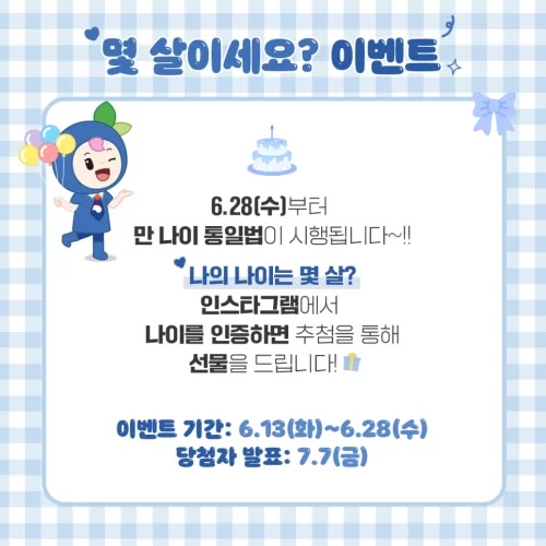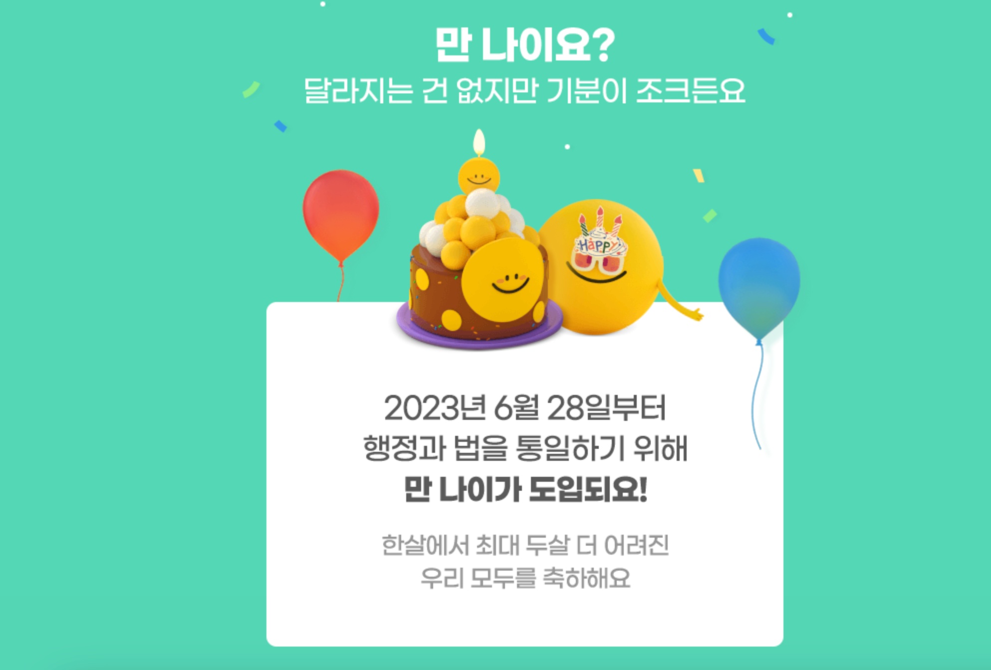 위 이벤트들은 '만 나이 통일법' 시행으로 인해 나이가 어려진 국민들을 위해 기획된 것입니다. 만 나이 통일을 기념하며 다양한 이벤트 혜택을 누려보세요!