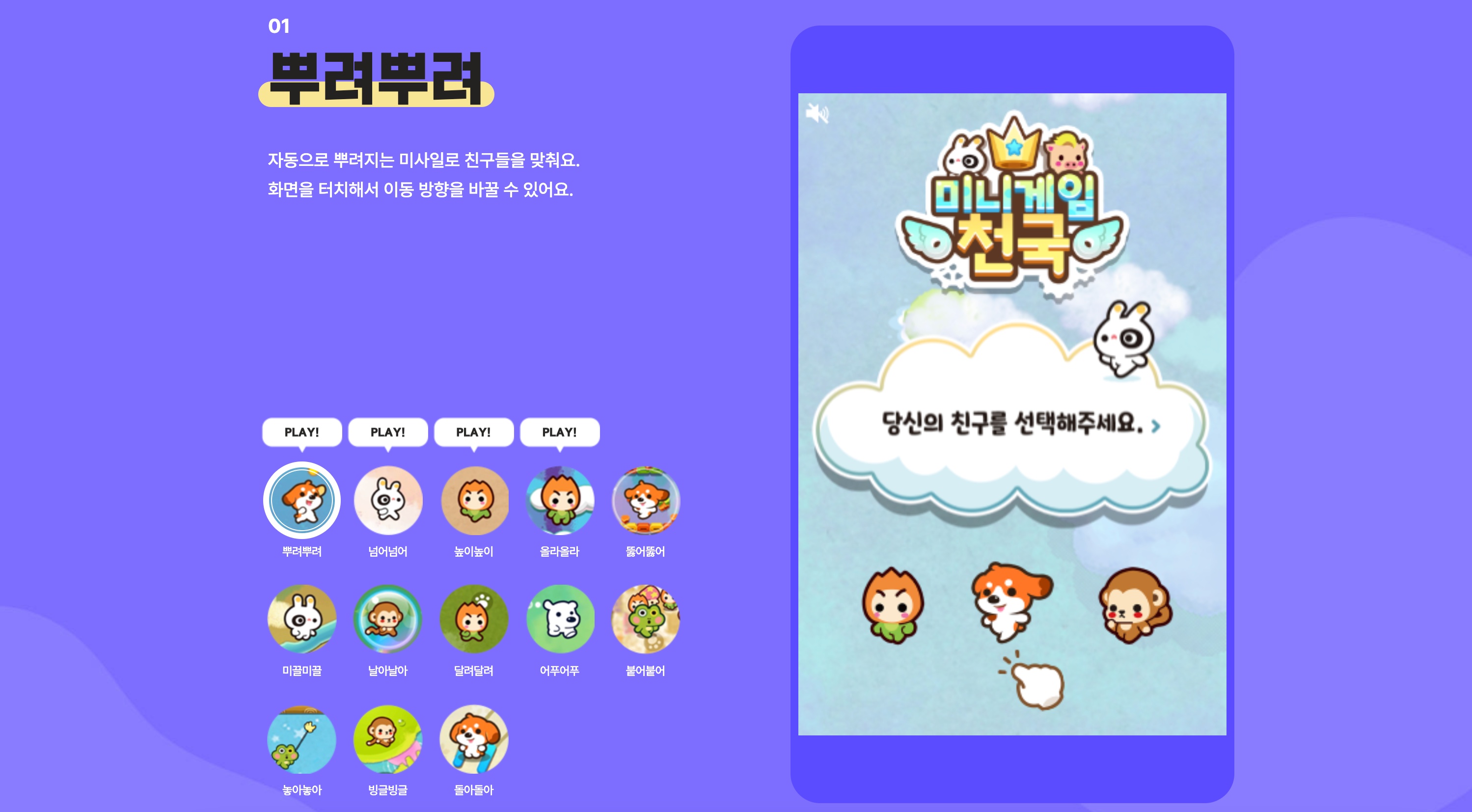 미니게임천국은 다양한 미니 게임 패키지와 매력적인 캐릭터로 유명한 컴투스의 대표적인 캐주얼 게임입니다. 이 게임은 터치 한 번으로 다양한 종류의 재미있는 미니 게임을 간편하게 플레이 할 수 있어서 전 세대에게 사랑받았습니다. 2000년대 출시 이후 전 시리즈의 누적 다운로드 수가 19백만 건을 기록하기도 했습니다.