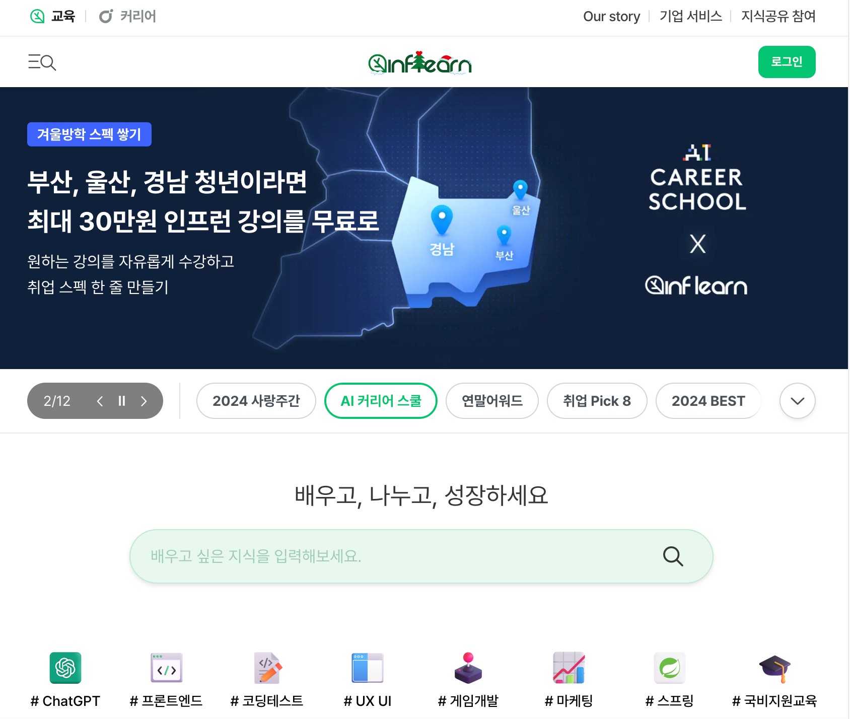 인프런은 IT 및 프로그래밍 관련 강의를 중심으로 한 플랫폼으로, 무료 강의도 많이 제공됩니다.