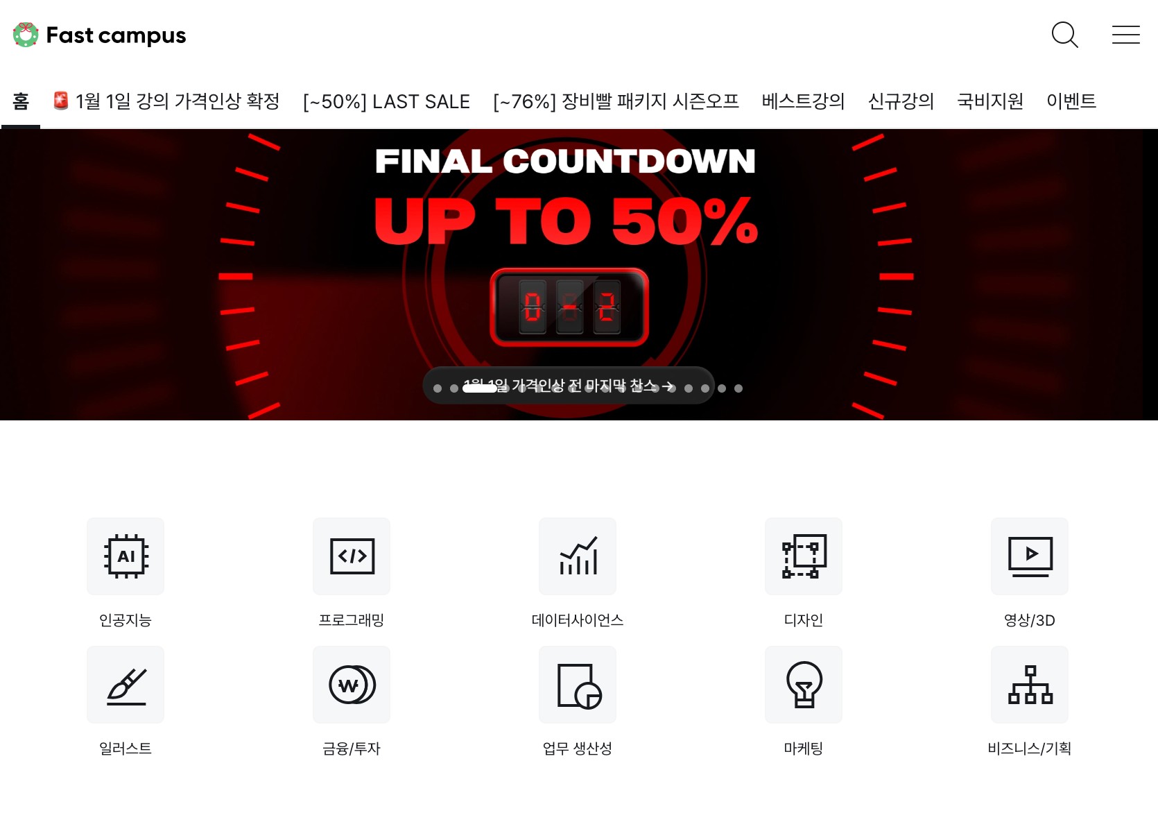 패스트캠퍼스는 IT, 디자인, 마케팅 등 다양한 분야의 강의를 제공하는 플랫폼입니다. 무료 강의도 다수 포함되어 있어 실무 중심의 교육을 받을 수 있습니다.