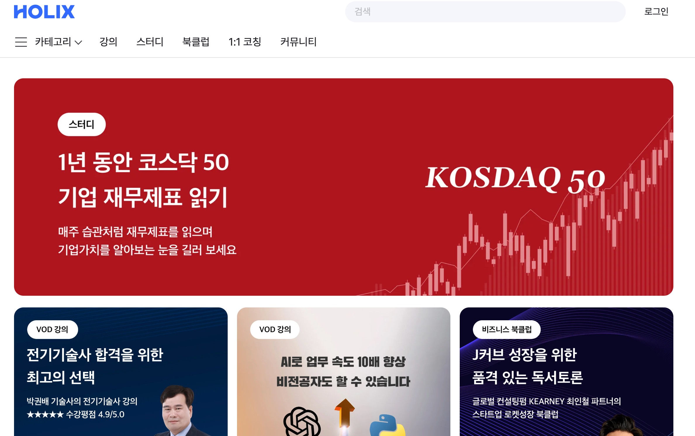 홀릭스(구 에듀캐스트)는 다양한 주제의 온라인 강의를 제공하는 플랫폼으로, 무료 강의와 유료 강의가 혼합되어 있습니다.