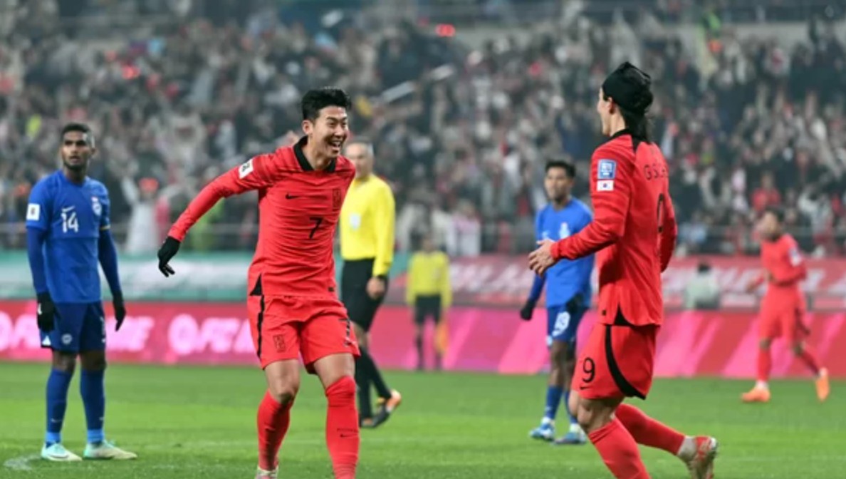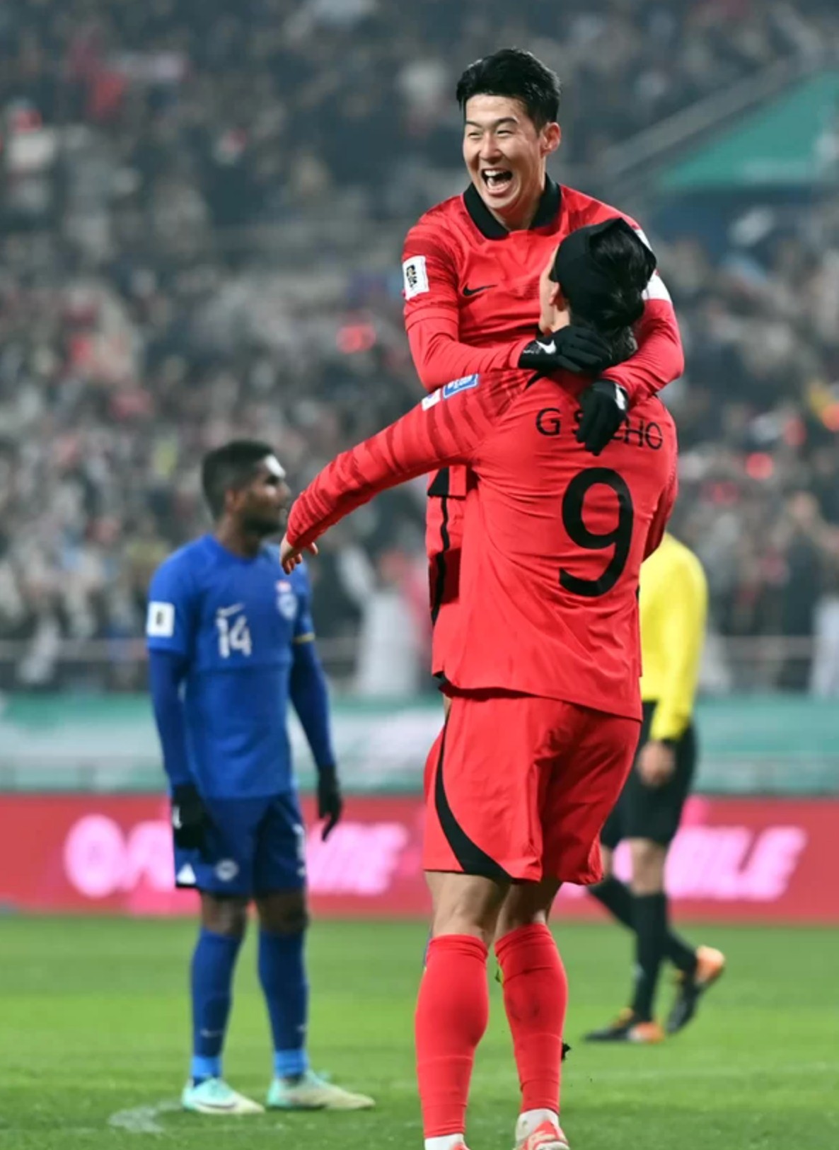 16일 서울월드컵경기장에서 개최된 2026 FIFA 북중미 월드컵 아시아 지역 2차 예선 C조 1차전에서 손흥민은 팀의 5-0 대승을 이끄는데 기여한 이강인을 자랑스러운 미소와 함께 지켜봤습니다.