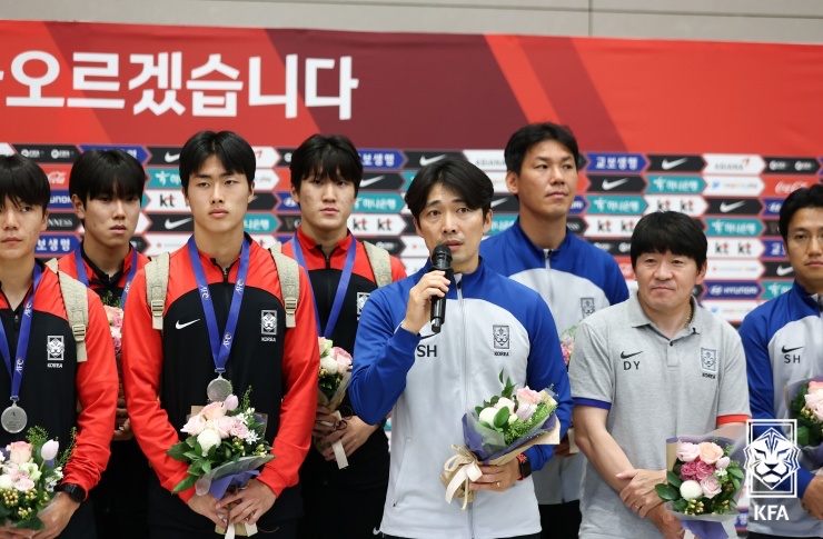 변성환 감독이 이끄는 U-17 대표팀은 AFC U-17 아시안컵에서 준우승을 차지하고 돌아왔습니다. 귀국식에서 은메달을 목에 건 선수들이 공항을 찾은 팬들로부터 환영과 박수를 받았습니다. 변 감독은 이른 아침부터 찾아온 팬들에게 감사의 인사를 전하며 대회 준비 동안 선수들이 피땀을 흘려 노력한 것에 대한 고마움을 표했습니다. 변 감독은 또한 이번 대회를 통해 선수들이 자신감을 키웠고, 팀의 방향성과 철학을 잘 증명한 결과를 얻었다고 언급했습니다.