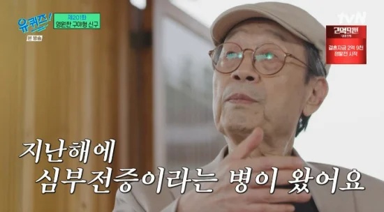 배우 신구(87)가 급성 심부전증으로 심장 박동기를 사용하고 있다고 밝혔습니다. 신구는 최근 방송된 tvN '유 퀴즈 온 더 블럭'에 출연했습니다.
