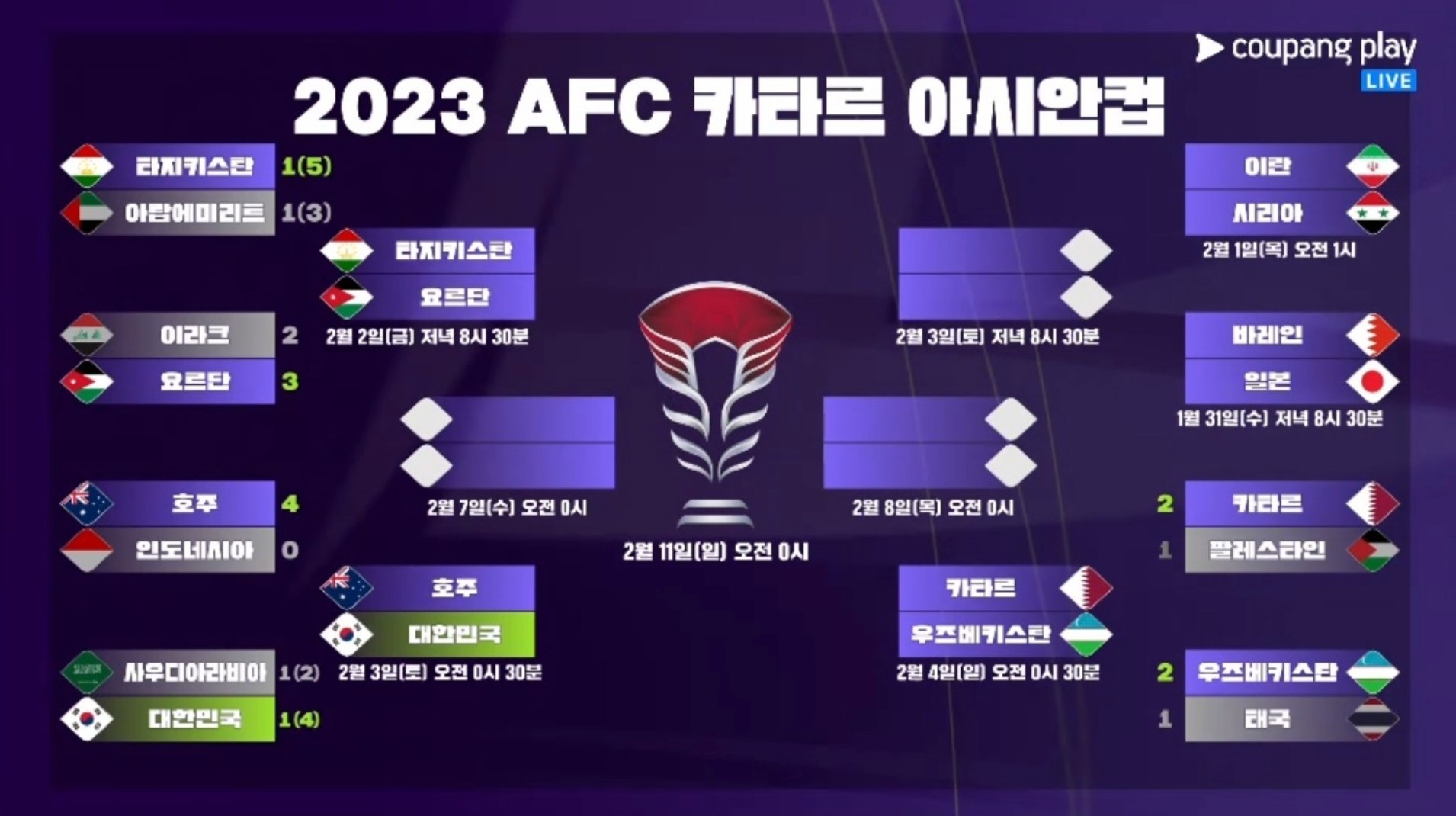 한국 호주 8강전 중계 시간 일정 심판 아시안컵 8강 대진표 경기 결과