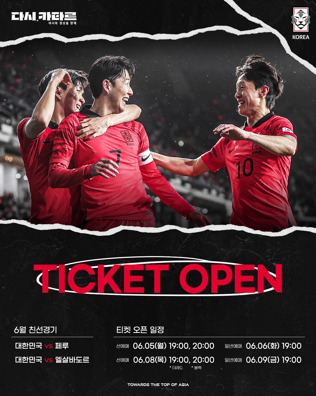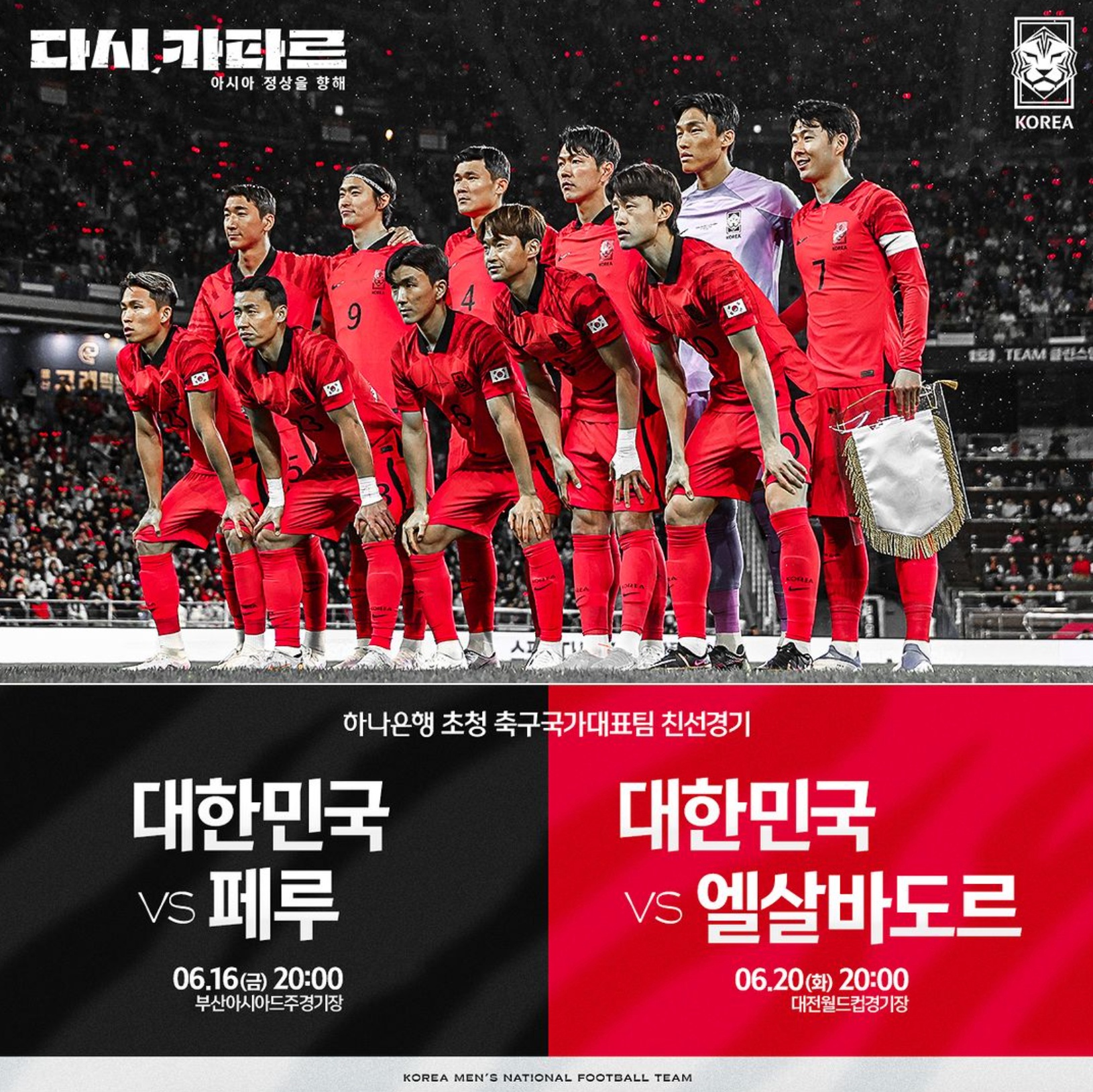 대한민국 축구 국가대표팀의 6월 A매치 하나은행 초청 축구 국가대표팀 친선경기 티켓 오픈 일정이 공개됐습니다. 이번 축구 대표팀의 친선 경기는 클린스만 감독의 지휘 아래 16일 페루, 20일에는 엘살바도르와 대결합니다. 양 경기는 모두 8시에 킥오프됩니다.