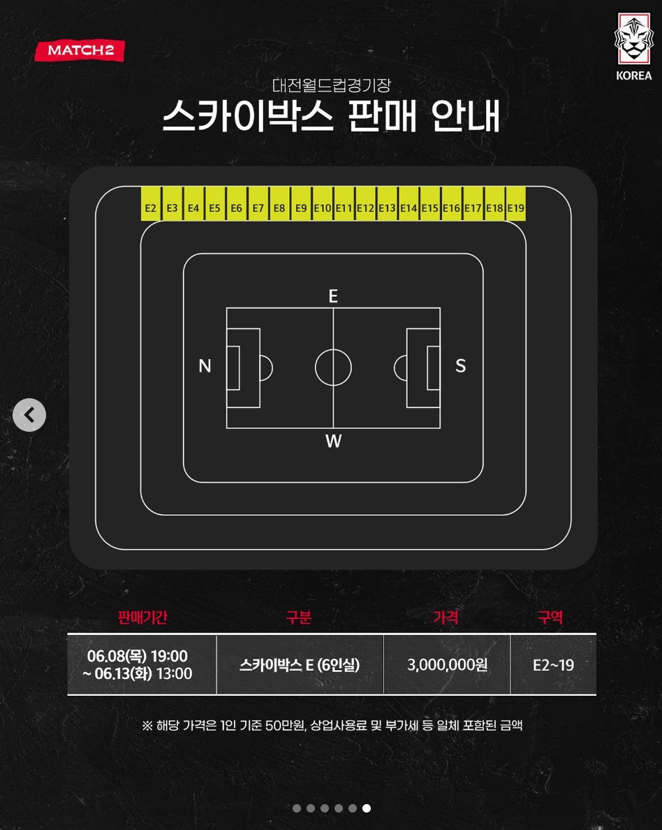 | 6인실 | E석 스카이박스 | 3,000,000원 |
