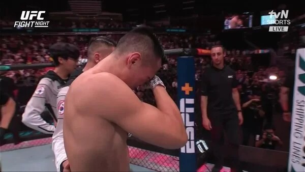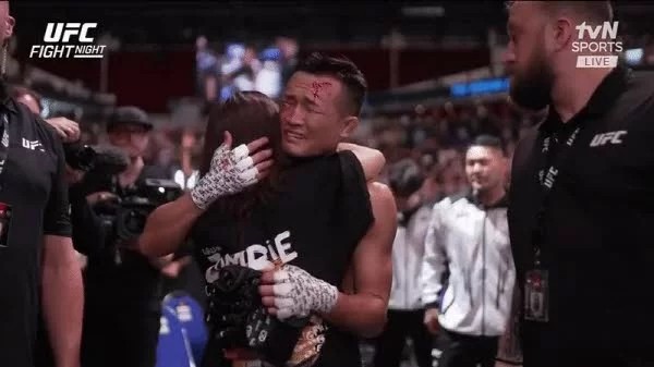 정찬성(36) 선수가 케이지 인터뷰를 통해 은퇴를 선언했습니다. 그는 경기 후 가장 먼저 아내와 마주쳤으며, 그 순간 그의 표정은 누가봐도 찡할 감동을 안겨주었습니다. 정찬성은 아내를 껴안으며 "수고했다. 그만하자"라고 말했고, 그의 눈물 흘리는 모습은 진정성과 감동을 자아내었습니다.