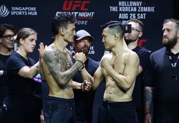 한국시각으로 26일 오후 6시부터 싱가포르 인도어 스타디움에서 개최된 UFC on ESPN 52에서 정찬성은 페더급 1위 맥스 할로웨이와 맞붙는 경기를 치렀습니다. 경기는 3라운드 23초에 할로웨이의 펀치로 인해 TKO로 패배하며 종결되었습니다.
