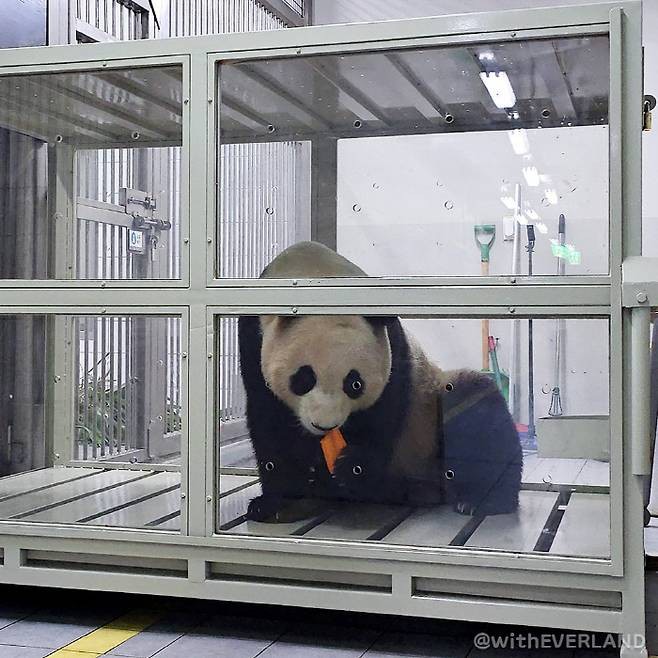 자이언트 판다 푸바오가 3일 중국으로 떠납니다. 이에 푸바오는 비행기 박스 적응 훈련에 참여하며 중국으로의 이동을 준비하고 있습니다.