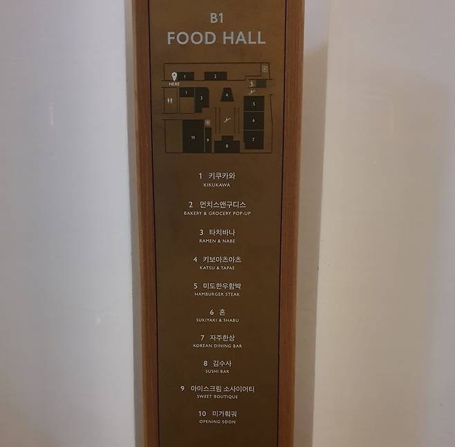 이곳은 백화점 폐점 시간과는 다르게 오후 10시까지 운영됩니다. 낮과 밤 어느 시간대에도 어우러질 수 있도록 조도를 미세하게 조절하여 최상의 미식 경험을 제공하게 됩니다. 메뉴와 공간 연출에도 세심한 신경을 기울였다고 합니다.
