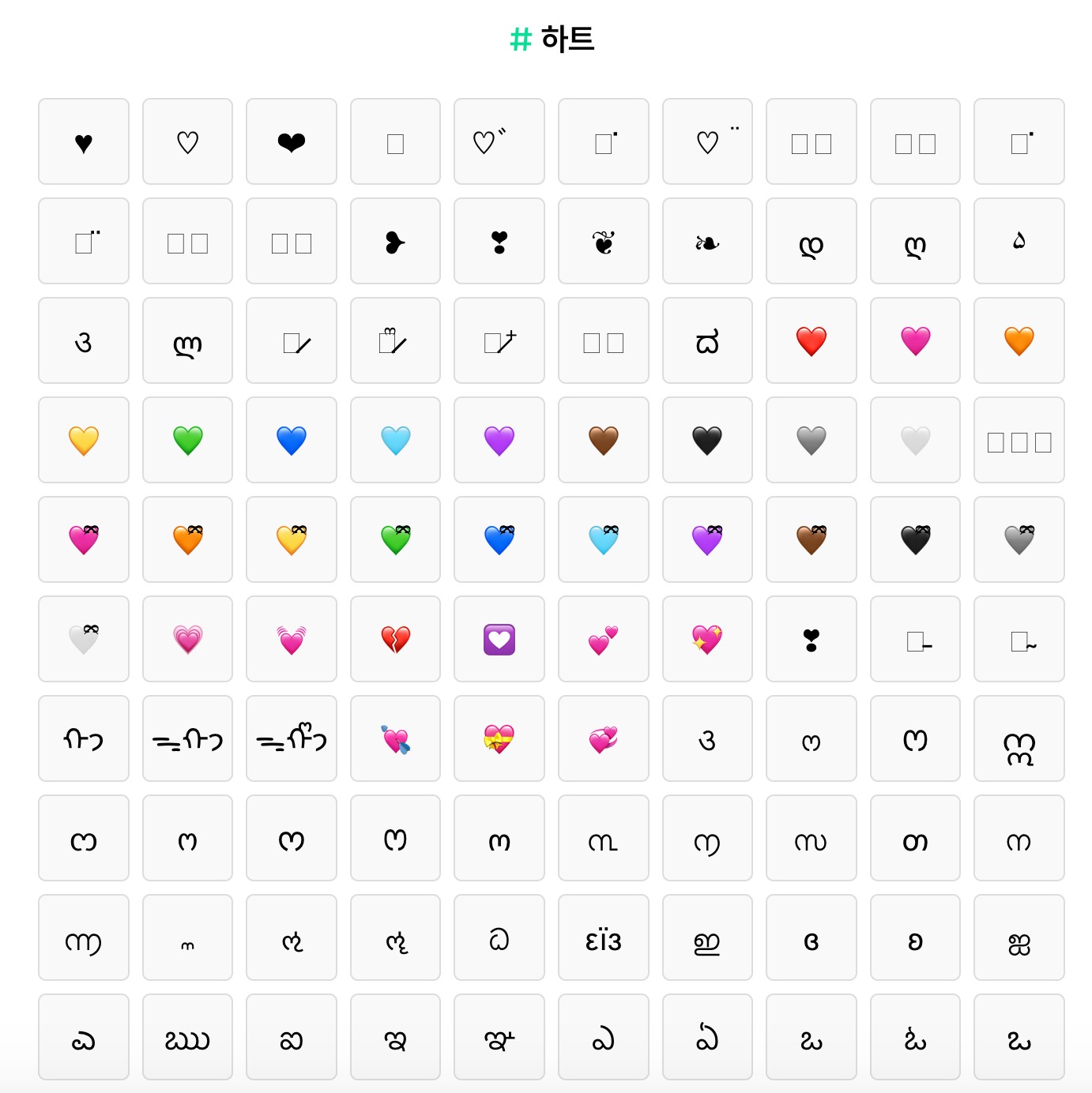 다양한 하트 기호와 이모지는 여기에서 확인할 수 있습니다.