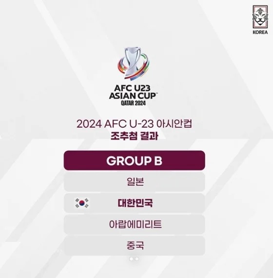 이번 대회에서는 상위 3팀에게만 파리올림픽 진출 자격이 주어집니다. 4위 팀은 아프리카축구연맹 소속팀과 플레이오프를 치러야 파리올림픽 본선 진출을 노릴 수 있습니다. 총 16개국이 참가하며 4개국씩 네 조로 나뉘어 조별리그를 치르게 되는데 어려운 상대들과 함께하게된 B조는 특히나 경쟁이 매우 치열할 것으로 예상됩니다.