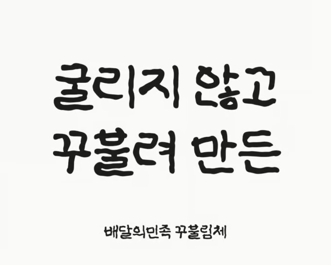 배민이 만든 13번째 폰트로 배달의 민족은 '꾸불림체'를 무료로 배포하고 있습니다. 자연스럽게 꾸불거리는 곡선이 특징이며 자유분방한 디자인으로 독창적인 느낌을 줍니다. 이 폰트들은 개인과 기업이 영리적, 비영리적 목적으로 자유롭게 수정하고 사용할 수 있습니다.