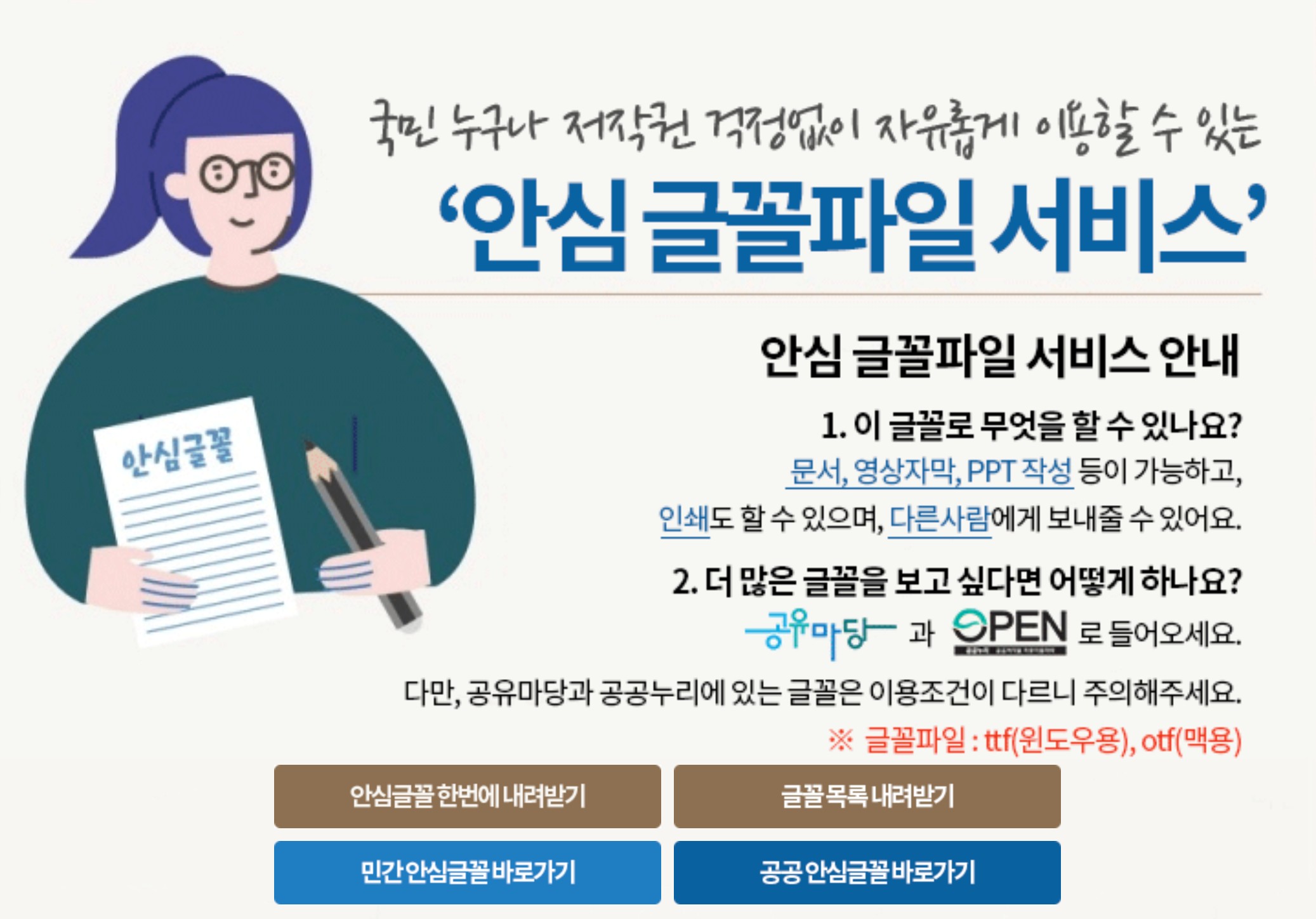 이 외에 다양한 무료 폰트들을 다운받고 싶다면 아래의 사이트들을 참고해보세요.