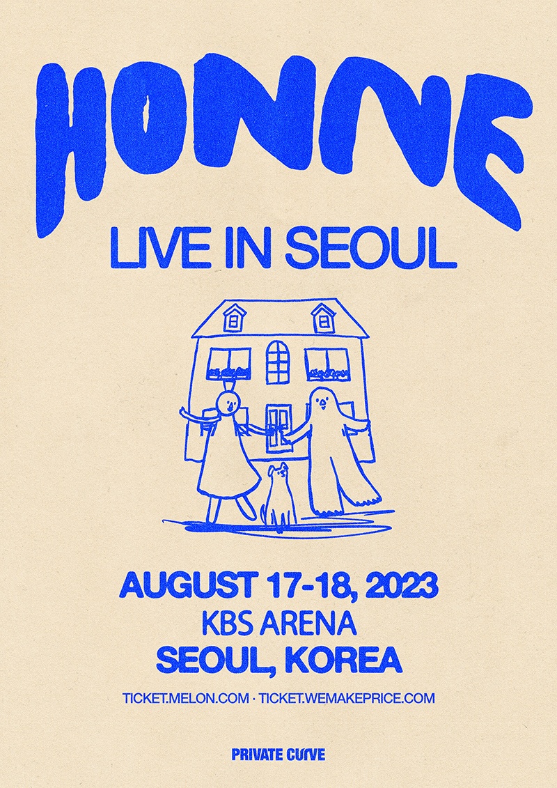 언제나 독특한 취향이 담긴 혼네의 음악을 내한 콘서트에서 라이브로 들어보세요! 혼네의 아시아 투어 중 하나로 진행되는 단독 내한 공연은 2023년 8월 17일 목요일 부터 18일 금요일까지 오후 8시에 KBS 아레나에서 개최됩니다.