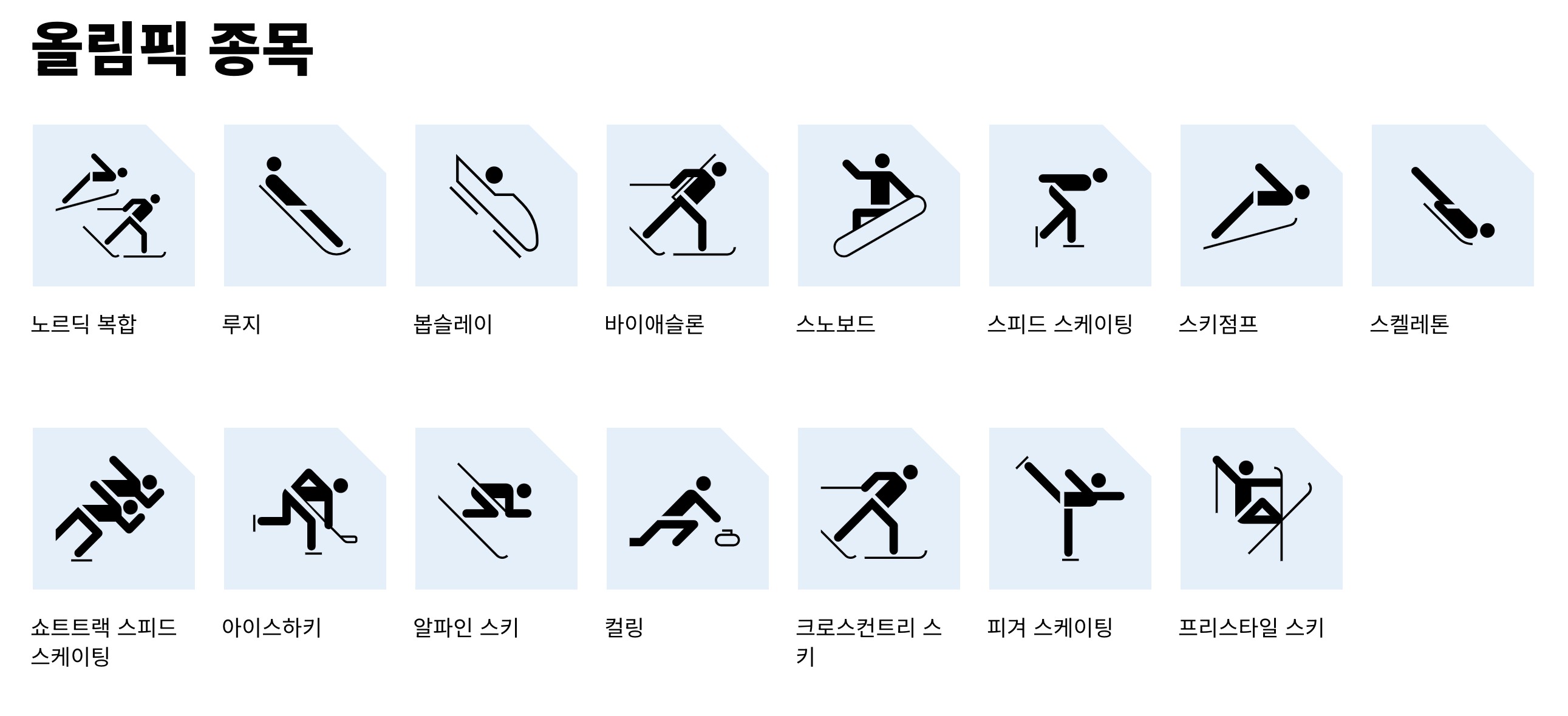 - 강릉(빙상), 평창(슬라이딩, 설상), 횡성 및 정선(설상)에서 열리는 경기는 모두 무료로 개방됩니다.