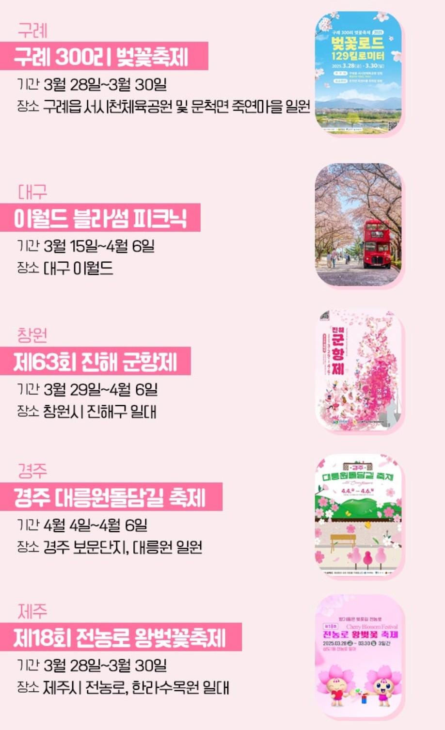 | 2025 전국 벚꽃 명소 베스트 10 총정리 (0) | 2025.03.22 |