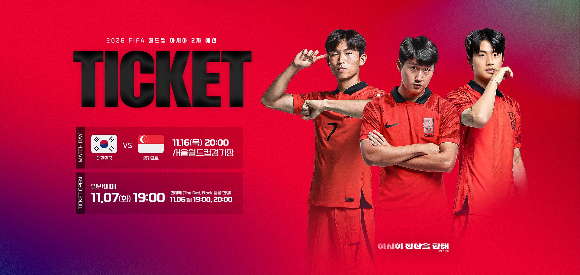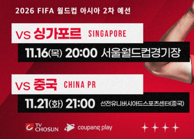 2026 FIFA 월드컵 아시아 2차 예선에서 싱가포르와의 A매치가 기다리고 있습니다. 이번 경기는 11월 16일 오후 8시 서울월드컵경기장에서 열릴 예정입니다.