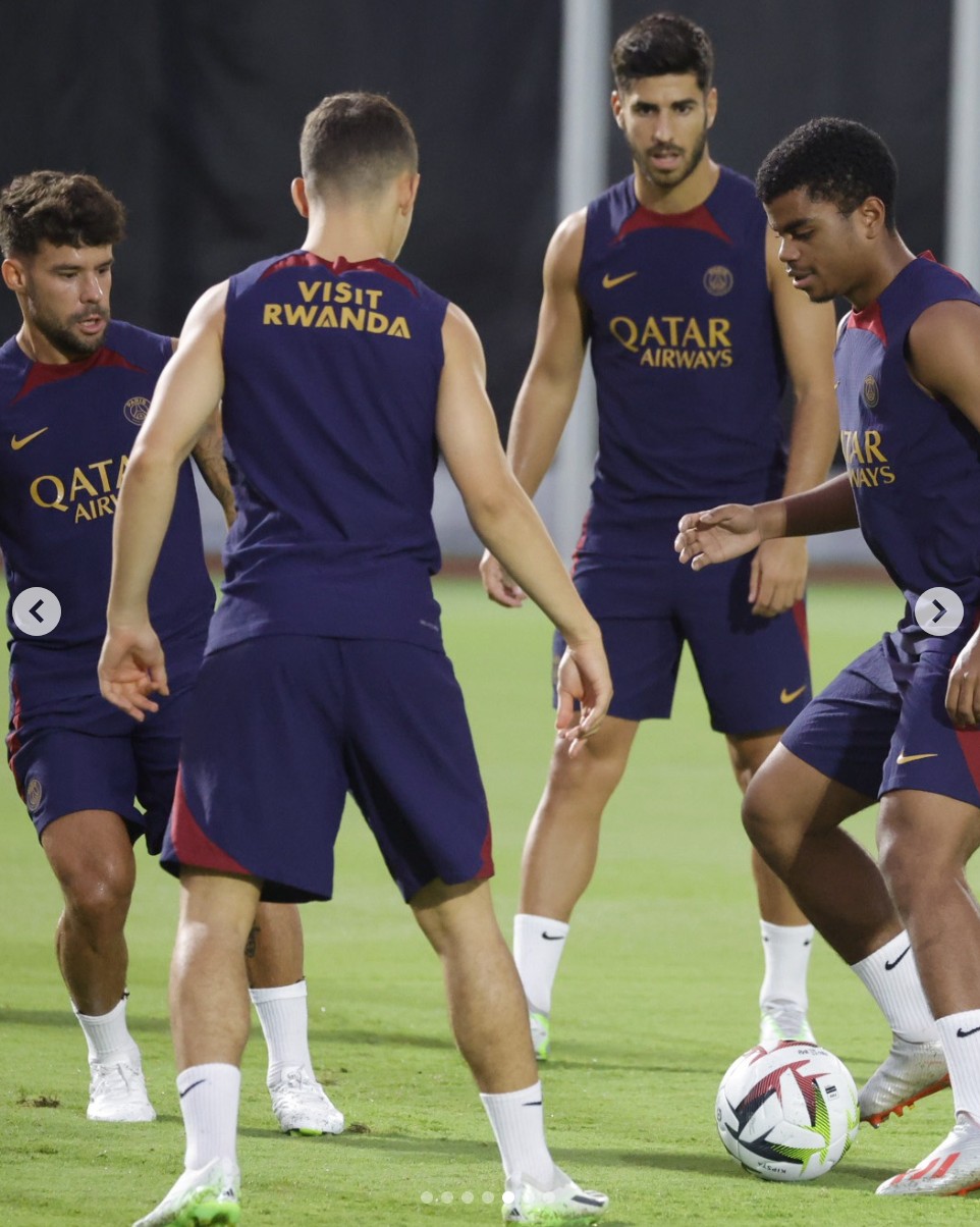 PSG가 27일 공개한 훈련 장면에서 이강인은 축구화를 착용하고 볼을 가지고 훈련을 진행하며 정상 컨디션으로 올라선 모습을 보였습니다. 앞서 이강인은 팀 훈련에 함께하지 못하며 부상 회복에 집중했으며, 지난 25일 열린 알 나스르와의 프리시즌 경기에는 결장했습니다.