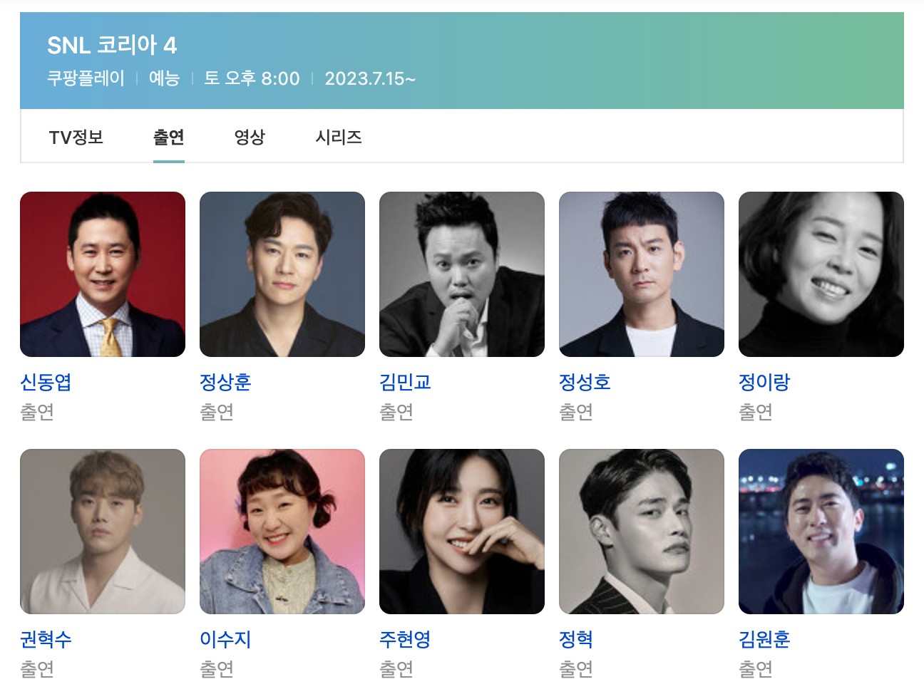 쿠팡플레이에 따르면 조각 같은 외모와 함께 유머 감각으로도 널리 알려진 정우성은 SNL 코리아를 통해 그 동안의 히트작 필모그래피에서 볼 수 없었던 파격적인 변신과 코미디 역량을 제대로 선보일 예정입니다. SNL 코리아는 5일 토요일 오후 8시에 방송됩니다.